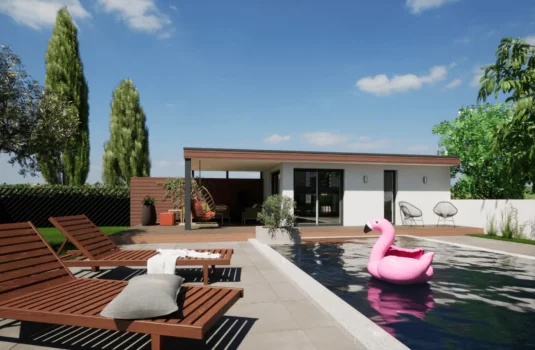 Contactez-nous afin de découvrir nos plans de poolhouse contemporains. Souhaitez-vous y intégrer une cuisine d’été ou un bar ? Préférez-vous un toit plat ou incliné ? Choisissez le modèle qui vous plait le plus et nous le personnalisons ensemble !